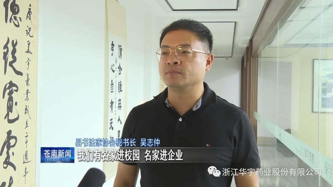 2023年9月17日蒼南縣書畫名家進企業活動走進華宇藥業公司。蒼南縣人大代表委副主任、縣書法家協會主席、書法家李祥縣文聯副秘書長、